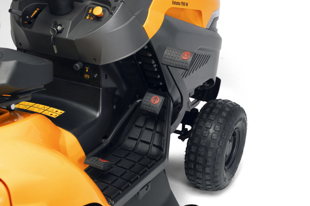 El tractor cortacésped Estate 798 W tiene una transmisión hidrostática, una característica premium que permite al conductor acelerar lentamente utilizando un pedal, esto no sólo ahorra tiempo, ya que no hay necesidad de detenerse para cambiar de marcha manualmente, también optimiza la maniobrabilidad y hace que sea fácil trabajar alrededor de cualquier obstáculo o paisaje.