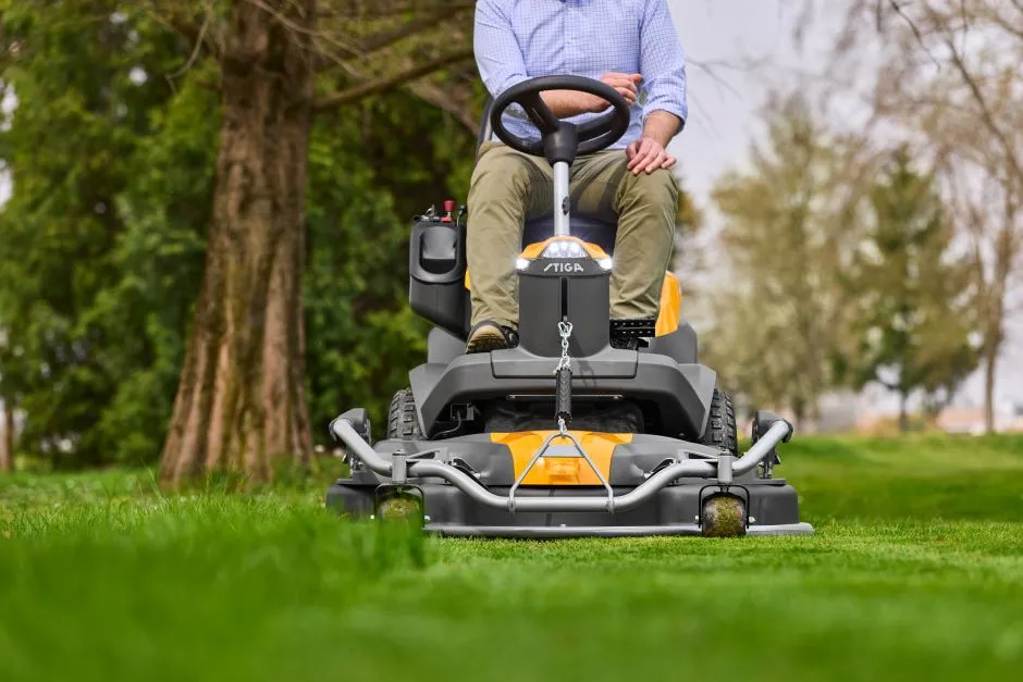 El tractor cortacésped de corte frontal Park WX te aporta la máxima potencia y con inconvenientes mínimos, destacando su motor bicilíndrico de calidad comercial ST 650 de STIGA, transmisión de eje convencional Tuff Torq de tracción total, y una ligera articulación 50:50 con dirección asistida. Su plataforma flotante montada en la parte delantera también incluye opciones de corte extra anchas de 95 cm a 125 cm. ¿El resultado? Un corte rápido, una conducción suave en superficies irregulares, una visión clara de la parte delantera, un fácil acceso a las esquinas y un corte preciso a lo largo de los bordes.